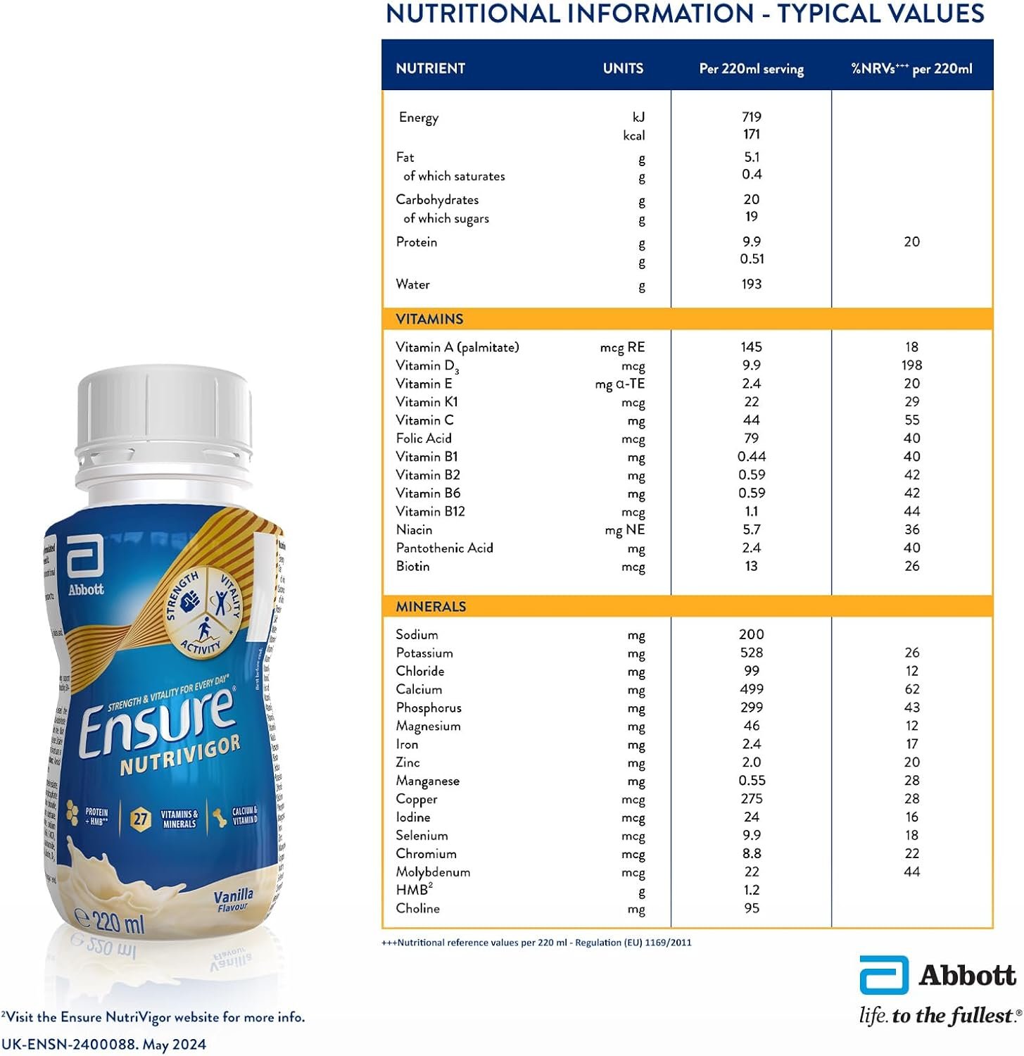 ensure nutrivigor nutritional shake – vanilla flavour – 12 x 220ml – boosts energy – ready to drink – food supplement with protein, hmb and27 vitamins and mineralsEnsure NutriVigor Nutritional Shake – Vanilla Flavour – 12 x 220ml – Boosts Energy – Ready-to-Drink – Food Supplement with Protein, HMB and27 Vitamins and Minerals
